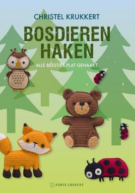 Christel Krukkert heeft voor dit boek een hele collectie bosdieren gehaakt: een hert, een zwijntje, een eekhoorn, een vos, en nog veel meer.